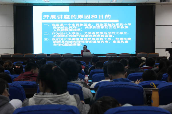2015级全体本科生做了题为“加强民族团结”的专题讲座。