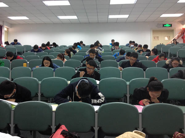 C区工科楼三楼、四楼和六楼部分教室举行了2015级硕士研究生英语听力与口语水平测试、专业课笔试、复试面试工作。