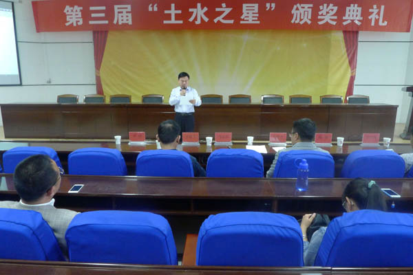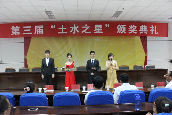 第三届“土水之星”颁奖典礼在A区文科楼一楼东报告厅隆重举行。莅临本次颁奖典礼的领导有学院党委书记马正亮老师,副院长毛明杰老师,党委副书记王德全老师、张强老师,副院长尹娟老师、李应海老师,2014级全体同学及获奖同学的亲友团参加了本次典礼。