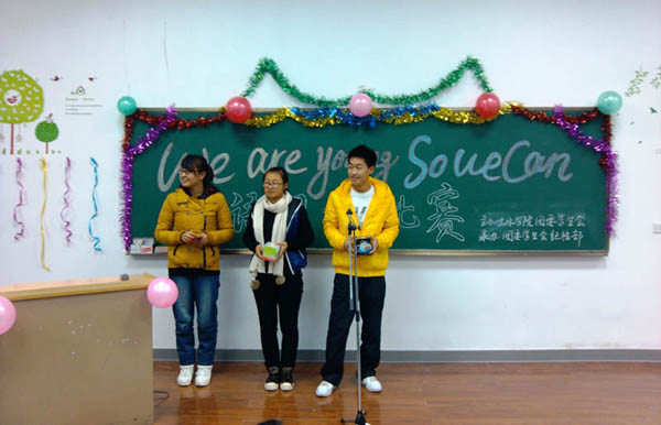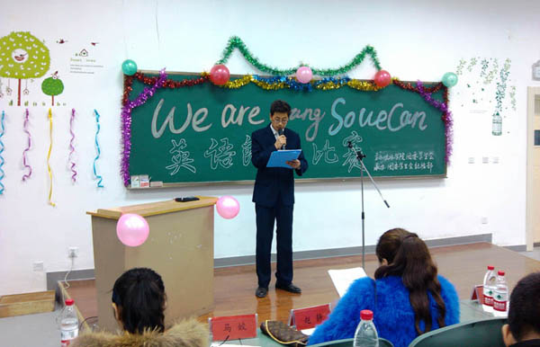 在工科楼第三阶梯教室举办了以“We are young so we can”为主题的英语朗诵比赛。本次比赛特别邀请到外国语学院郭晓燕老师、赵静老师、李天紫老师和成人漫画