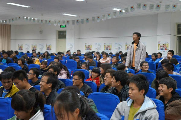 报告首先通过观看中央电视台《身边的感动》视频,由乔婧同学讲述政法学院2008级行管专业李进福身残志坚、自强不息和张志博等人四年如一日默默奉献、不求回报的感人事迹,引导学生树立团结互助、勤俭自强的优良品质。随后,学院2008级建筑专业齐一聪同学向大家介绍了他在大学期间的学习经历与奋斗历程:本科阶段在全国各类学术期刊共发表学术论文13篇,其中核心期刊学术论文3篇;曾参加全国建筑建模竞赛,取得了三等奖的佳绩;参加“挑战杯”全国大学生创业设计竞赛,获得自治区二等奖、成人漫画