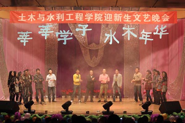 纪检委书记孔斌教授,副校级调研员兼学院院长田军仓教授,学院党总支书记马正亮老师,副院长姚青云老师、崔自治老师、尹娟老师、马彩霞老师,党总支副书记张强老师,博士生导师、三办主任、新生班班主任与2012级新生一起观看了晚会。