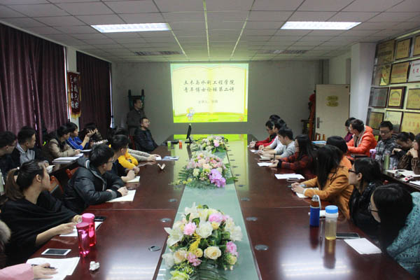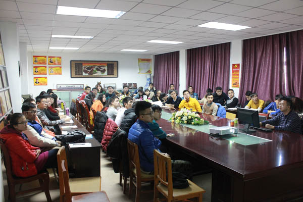 在读博士生张刚担任本次博士论坛的主讲人,学院15级全体硕士生听取本次讲座。
