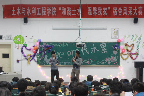 本次大赛的评选由风采展示和才艺展示两个环节构成,首先是由参赛的六个宿舍的代表队他们的宿舍进行ppt讲解,有以简约自然为主题的也有以灰色城堡为主题的,还有以二次元世界为主题的,风格迥异,十分的吸引眼球。风光的背后,有汗水,有辛勤的劳动,更加彰显了宿舍温暖的意义,那便是能相聚在一起“we are伐木累”的缘分。才艺展示环节各宿舍使出浑身解数,有吉他弹唱、有舞蹈、有小品、有相声……现场气氛十分热烈,经过严格评分,21号楼314宿舍荣获一等奖。