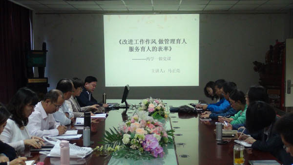 在工科楼四楼多媒体会议室开展了“两学一做”学习教育。参会人员包括学院教工第三党支部全体党员、教工一、二党支部委员以及各学生党支部委员。会中,学院党委书记马正亮结合“两学一做”第二专题学习内容为全体参会人员做了题为《改进工作作风,做管理育人服务育人的表率》的专题讲座。马正亮书记以成人漫画