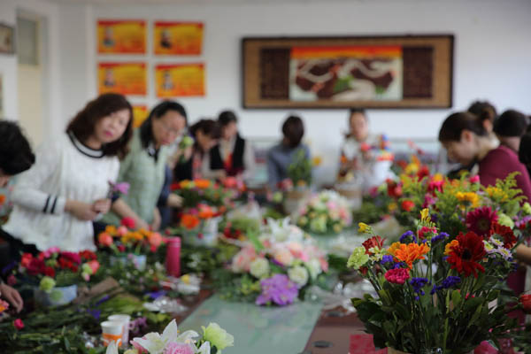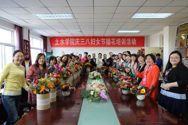 举办由宁夏天地缘花卉公司邀请台湾花艺师许乘慈女士主讲的插花艺术讲座。讲座前,学院党委书记高继明代表学院党委行政向全院女教工表示节日的祝贺。在讲座中花艺师许女士介绍了一些常见花种、插花基本花型及技巧,并详细地介绍当前中国插花行业的历史及主要趋势等知识,通过实际操作的形式让女教工门学习了盆钵插花的基本技艺。各位教工一个个兴致勃勃,一边跟着老师学,一边用心地插花,并随时与老师互动、探讨。几朵康乃馨、几朵玫瑰,配上平时不多见的水烛草等材料,借着花儿美丽的外观,满足视觉感的需求,大家都变得心灵手巧的插出自己最美的作品。经过近两个小时的培训,一件件美丽的作品展现在了大家眼前,女教工们相互交流插花心得,脸上都洋溢着幸福的笑容,充满了成就感与喜悦感。