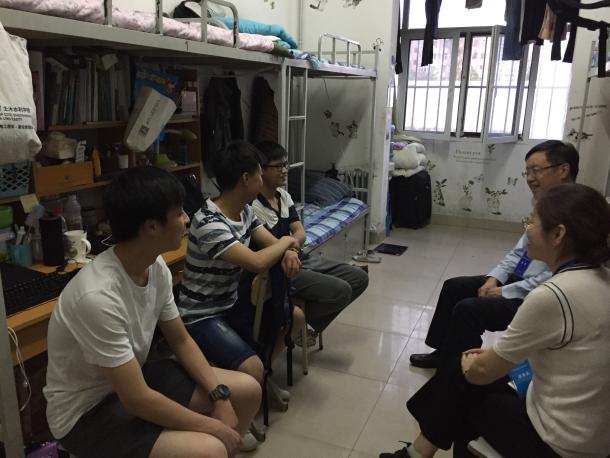 范教授先走进15#公寓的学生活动室,与正在筹备学生活动的团委学生会干部进行了亲切交谈。随后,范教授来到学生宿舍,与学生深入交谈,亲切询问了同学们对于宿舍同学关系、大学生活规划和今后就业发展规划等一系列问题的看法,并查看了宿舍卫生状况。在与同学们的交流过程中,他勉励同学们要将自己的发展定位定的高一些,要树立远大理想,为成人漫画
