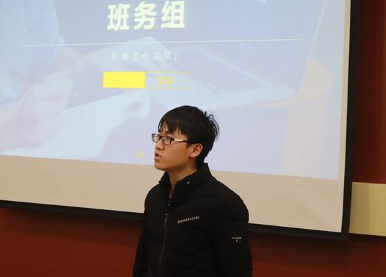 王凯亮作期末考试动员。他表达了对学院“学业辅导员”的感谢,分享了自己应试的心路历程,说明了考试挂科所导致的不良后果,号召大家能提高对期末复习阶段的重视程度,合理规划复习节奏和时间安排,争取在期末考试中实现一次性过关,共同实现班级“携手一同毕业”的目标。