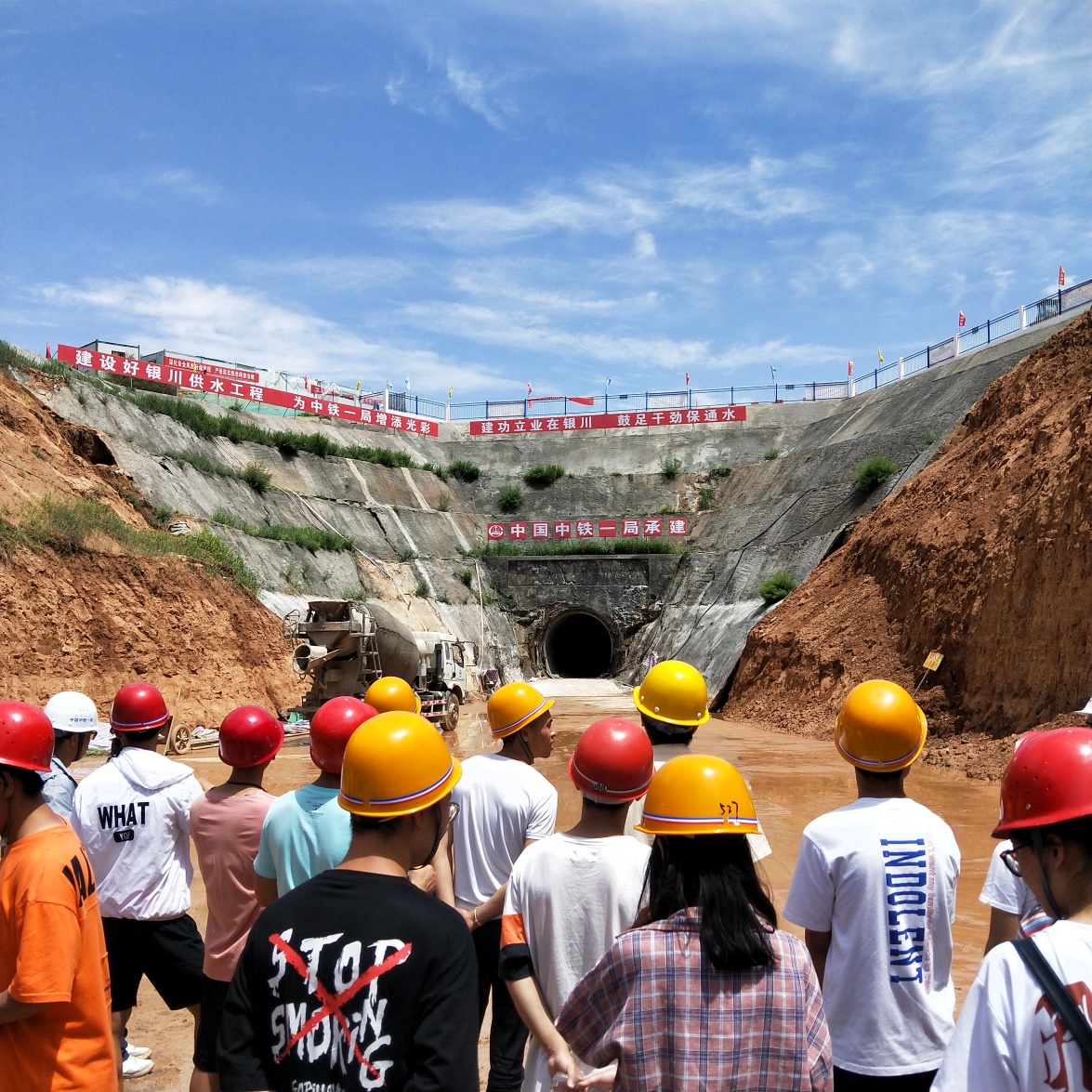 2019年6月29日同学们一路从黄河泵站、西夏水库水源地沿线输水和蓄水工程到闽宁镇至平吉堡农场附近的银川南部水厂,参观学习了整个银川都市圈西线供水工程的全部项目,对西夏水库取水泵站的水源工程;输水隧洞、箱涵、管道等输水工程的土建工程施工现场进行了参观、考察与学习。