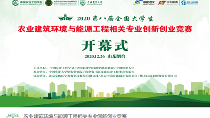 2020年12月26日,第八届全国大学生农业建筑环境与能源工程相关专业创新创业竞赛在中国农业大学烟台研究院开幕。受新冠疫情影响,本次竞赛为线上竞赛。竞赛由中国农业工程学会、全国农业科技创业创新联盟和中国农业大学共同主办。