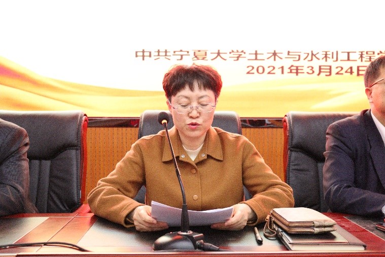 为贯彻落实学校党委党史学习教育部署要求,土木与水利工程学院于3�24日在知行楼三阶举行了党史学习教育动员大会。学院党委书记张晓天、党委副书记苏宇静、尹娟,党委委员、副院长刘海峰、李王成和朱磊出席会议。院长毛明杰列席会议,学院全体正式党员参加了会议。会议由学院党委副书记苏宇静主持�