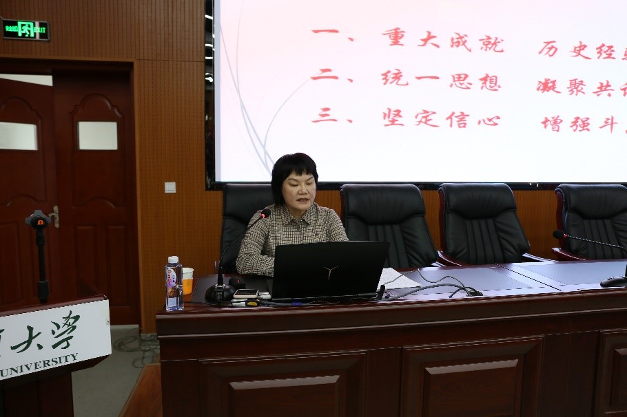 在知行楼三阶会议室召开了党的十九届六中全会精神主题宣讲暨第十次教职工理论学习会。