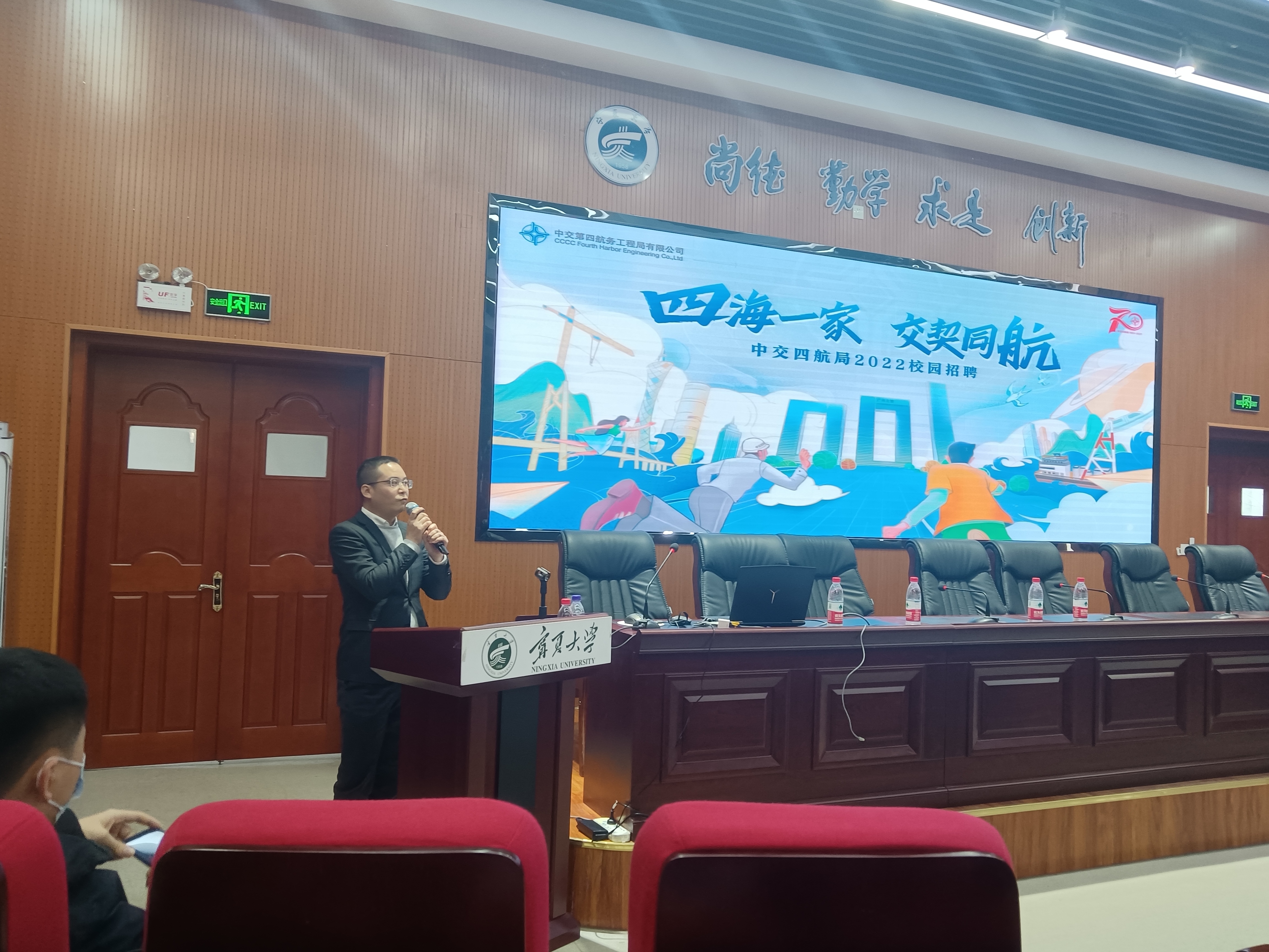学院党委书记陈晓敏代表学院对兰书记一行表示热烈欢迎并致辞,对本次洽谈预期提出了三点希望:一是以招聘为契机,深入开展交流合作,建立长期合作机制;二是建立校企合作平台,通过实习实践等活动,参与企业发展,感受成人漫画,帮助学生实现就业观念从感性认识到理性认识的转变;三是加强科研合作,联合申报课题,开展横向合作课题,实现学院和企业的双赢共进。随后,兰志成介绍了中交第四航务工程局有限公司粤东分公司的文化理念、发展历程和人才需求。