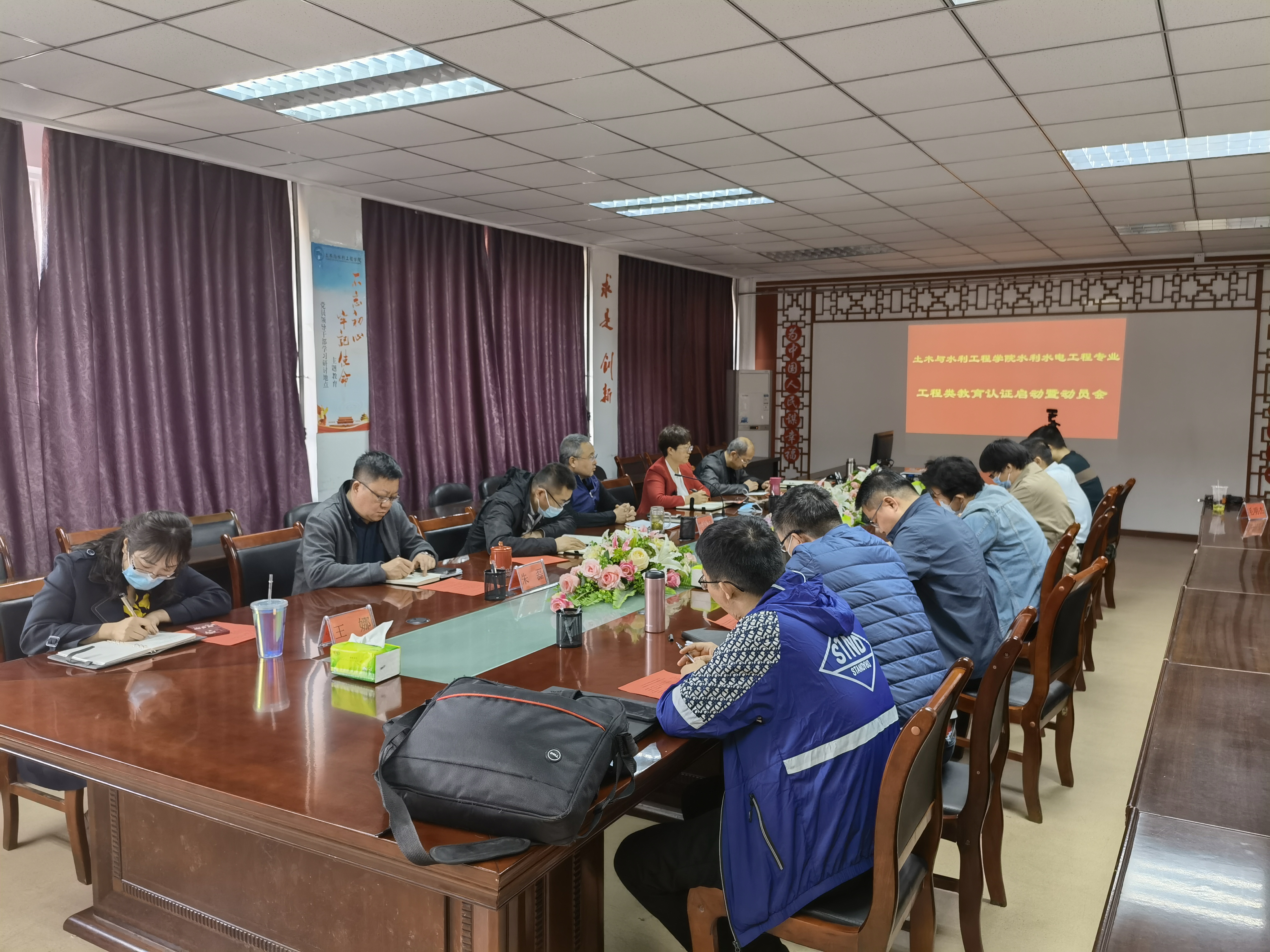 会议由线上+线下的方式进行,由李王成副院长主持。首先,主持人介绍了水利水电工程专业工程教育专业认证的前期准备工作。然后,水利系主任王炳亮宣读了《水利水电工程专业工程教育专业认证工作方案》,根据工作方案学院成立了专业认证领导工作组和7个专业工作小组,安排任务分工、时间节点和主要责任人。