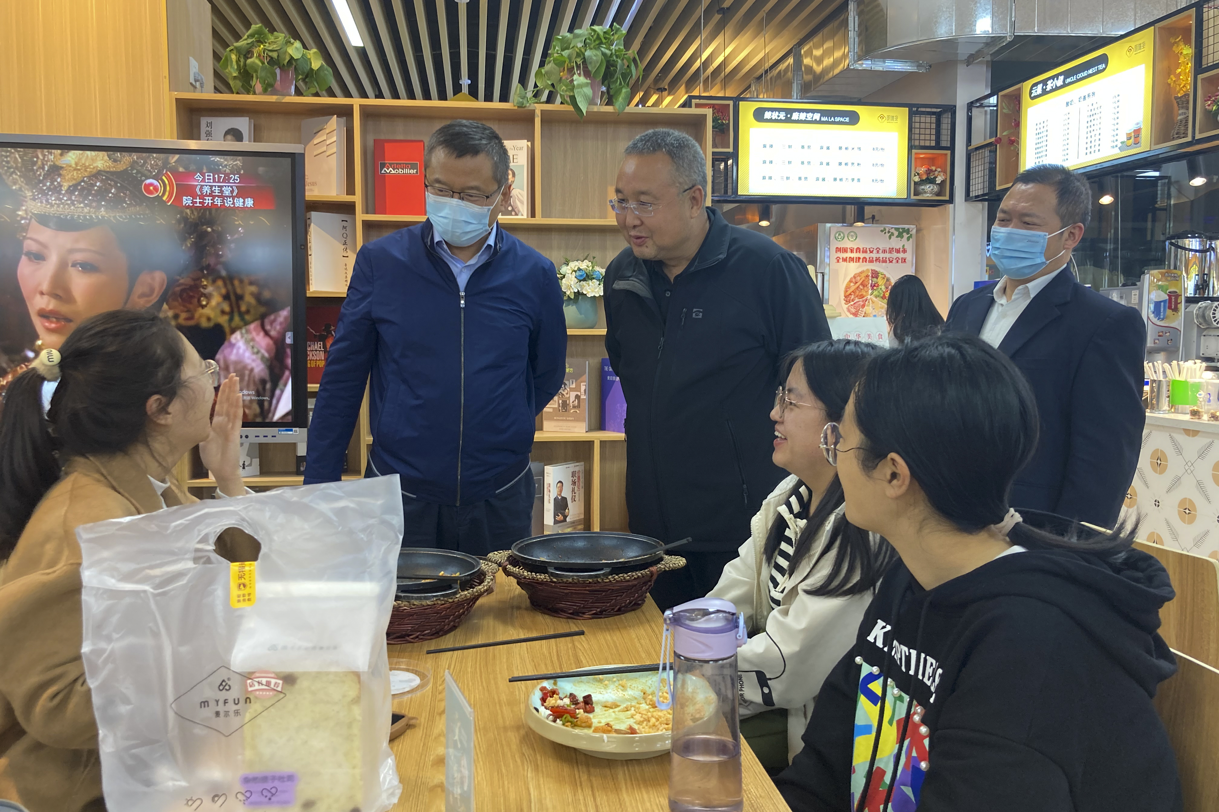 2022年5月12日晚,校党委常委、副校长王忠静在成人漫画 党委书记陈晓敏等学院班子成员的陪同下到文萃校区学生食堂就餐,深入开展“七进一交友”活动。