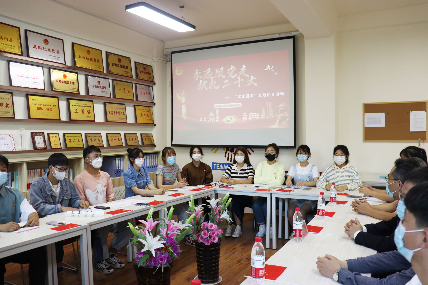 于2020级建筑学班于2022年10月1日在知行楼313活动室开展了“永远跟党走,献礼二十大”欢度国庆节主题团日活动。本次团日邀请到校党委常委、副校长史金龙、校团委书记肖功国、院党委书记陈晓敏前来参加。活动由学院团委副书记王雪娜主持。