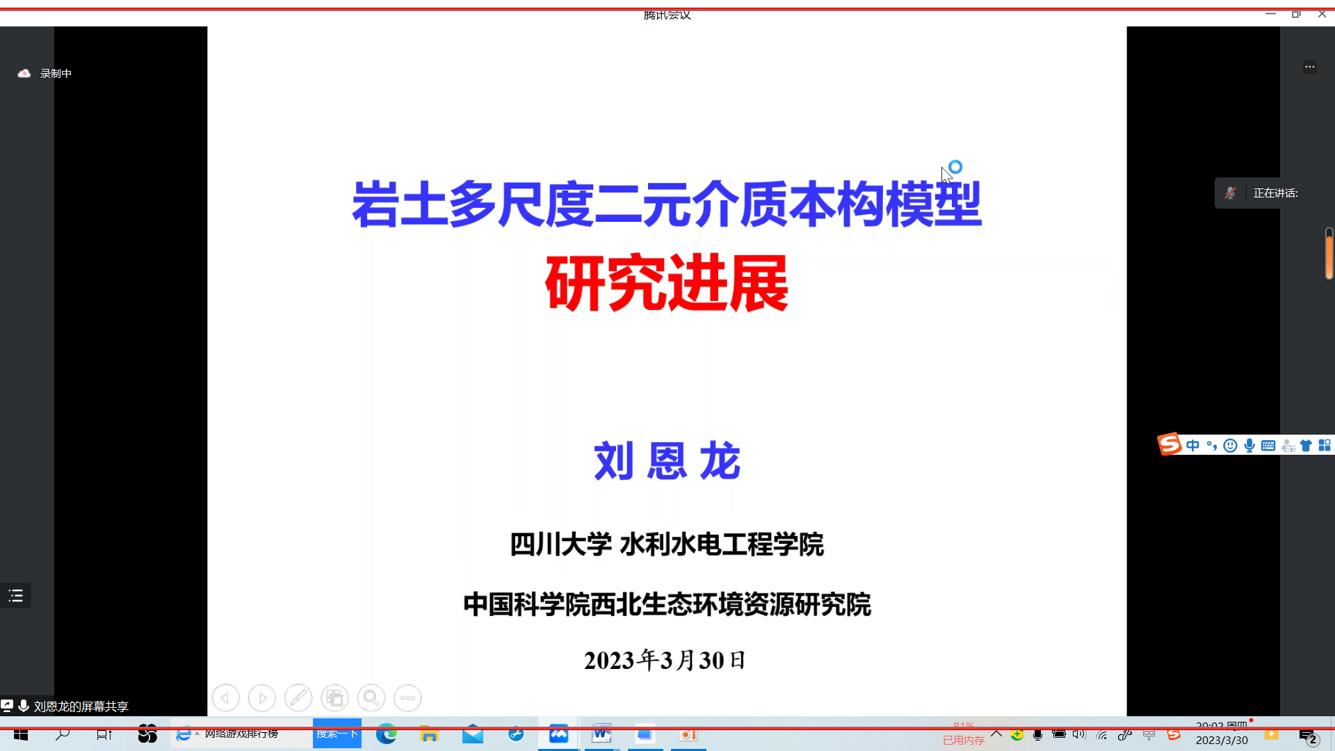 师生做题目为“岩土多尺度二元介质本构模型研究进展”的线上学术报告。报告由刘海峰副院长主持,成人漫画