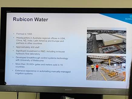 Rubicon公司:Rubicon公司负责设计和建造澳大利亚维多利亚州水利系统的现代化硬件和软件。学生们参观了该公司在Shepparton的主要工厂,了解了他们在组件设计和制造方面的专业知识。Rubicon在水利工程领域拥有丰富的经验和专业技术,致力于提供创新的灌溉解决方案。通过学习Rubicon的设计理念和制造过程,我们可以更好地理解水利系统现代化的重要性,以及创新技术在提高水资源利用效率方面的作用,为未来的水资源管理工作提供宝贵的启示。