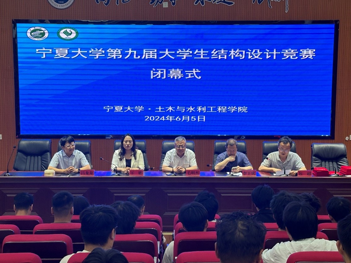 宁夏大学土木与水利工程学院院长毛明杰教授在闭幕式上致辞。他表示,结构设计大赛不仅是一个展示学生专业技能的平台,更是激发学生创造力和团队协作精神的重要契机。他鼓励同学们继续努力,不断提升自身素质,为未来的工程事业打下坚实基础�