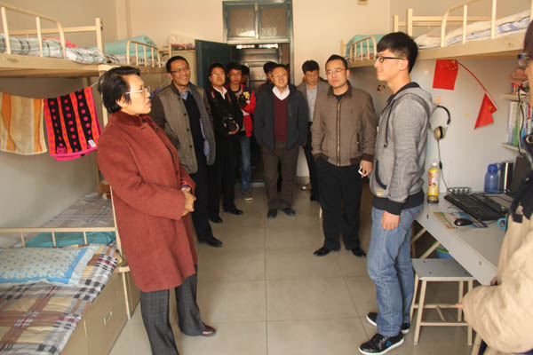 孔书记一行认真走访了学院男生宿舍,每到一个宿舍,孔书记都会仔细查看宿舍内物品的摆放情况和卫生状况,希望同学们树立“要会学习,更要会生活”的健康理念。在检查中,对精心布置、干净整洁的宿舍提出表扬,对个别宿舍则提出批评并督促改正。与此同时,孔书记与同学们亲切交流,详细了解在校期间的学习和生活,对同学们提出的问题也给予耐心解答。