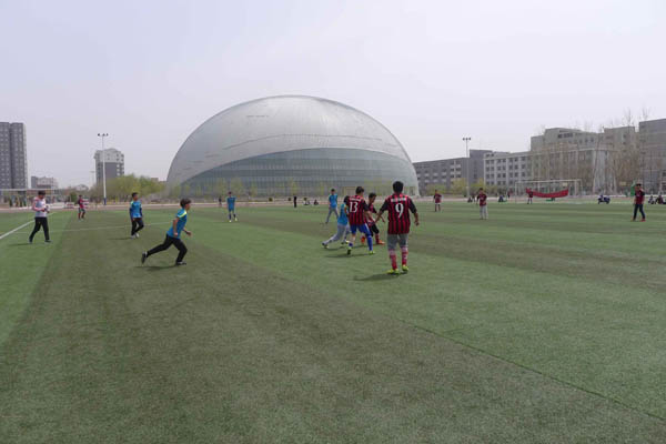 水利水电班和农业水利班两支参赛队的22名参赛队员成功进入决赛。11位农业水利班的球员身着蓝色球服,11位水利水电班的球员身着红色球服。红与蓝交相辉映编织成了春日操场上最灿烂的画面。一颗小小的足球在球员们的脚下疾驰却又不是不失方寸。一个小小的足球赛踢出了同学们的自信和骄傲,更踢近了同学们之间的友谊。