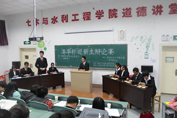 “年华杯”新生辩论赛总决赛在C区工科楼三阶隆重举行。本次辩论赛特邀嘉宾有学院团委书记王娜老师、校辩论队队长马英达同学及土水学院团委学生会主席团成员。进入本次辩论赛决赛的班级分别是14级工程管理班、土木工程一班、建筑班和城乡规划班,各个参赛班级的亲友团也参加了本次比赛。