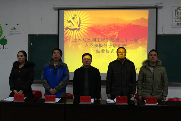 第二十三期入党积极分子培训结业仪式在工科楼三阶教室隆重举行。学院党委书记马正亮,党委副书记王德全、张强,学办主任郭利,团委书记王娜和全体培训学员参加了本次结业仪式。