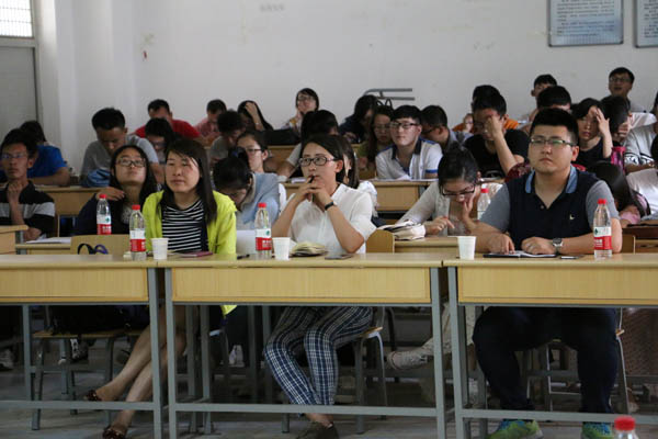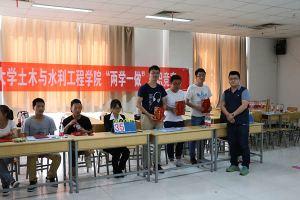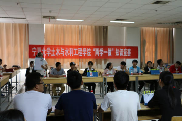 “一站到底”暨“两学一做”知识竞赛在L楼106教室举行。土水学院水利系学生党支部书记陶雪梅、博士研究生代表开晓莉、何进宇以及本科、研究生党员观看了此次竞赛。