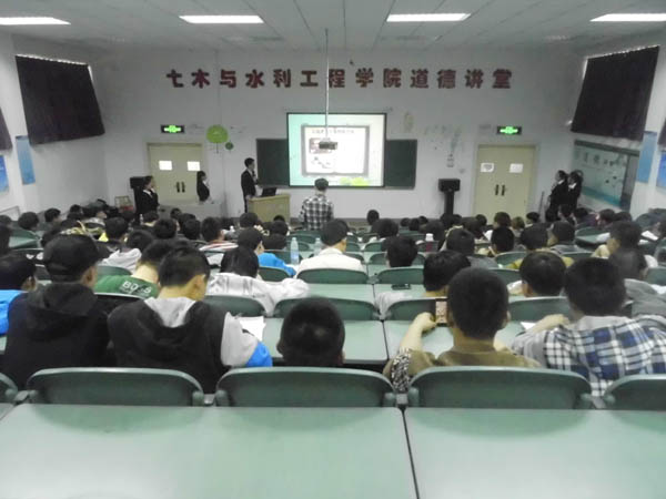 第一期“道德讲堂”于C区工科楼三阶开讲。学院学生办公室主任郭利出席并宣布活动开幕。