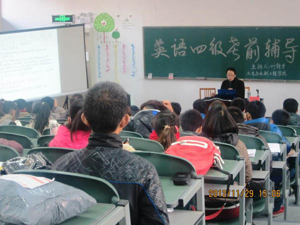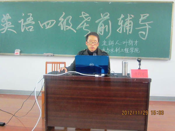 学生英语学习热情,帮助学生积极备战即将到来的全国大学英语四级考试,近日11级辅导员叶新才老师在工科楼第三阶梯教室为成人漫画
