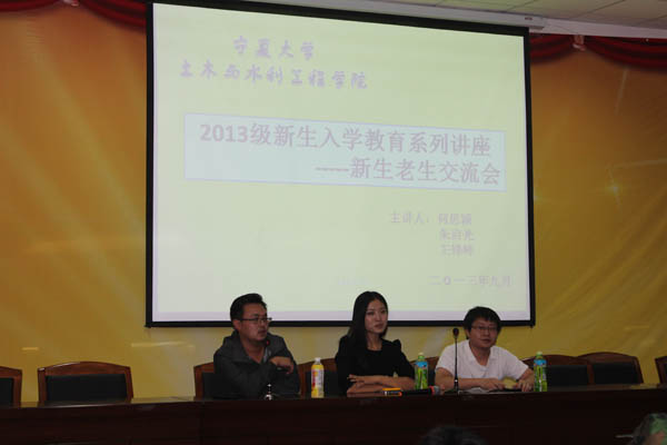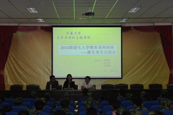 2013级新生入学教育系列讲座之新生老生交流会在A区文科楼东报告厅举行。