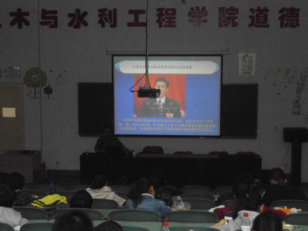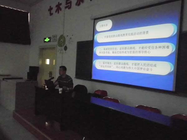 此次讲座主要内容有三个,首先党老师讲述开展党的群众路线教育实践活动的背景。具体情况分为四风问题,主要表现在理想信念动摇,宗旨意识淡薄,精神懈怠和以权谋私。二是纵观党的历史,走好群众路线。党老师通过对党的一大,七大和十八大的对比,总结出党的群众路线的方向和对社会主义市场经济体制探索的方向。三是面对现实,走好群众路线。党老师引用毛泽东晚年回忆和中国改革开放的事例,总结出两个历史方位:社会矛盾凸显期和中国的机遇期。
