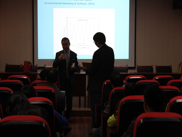 教授结合自己在澳大利亚、新西兰等国家的亲身经历和当前世界用水问题向出席师生讲解了新一代分数阶微积分模型的发展历程,并简述了它在水文水力的应用进展。同时还介绍了几种经典的综合分数阶微积分模型。在提问环节中,
