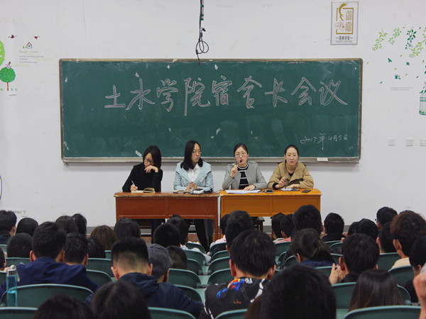 宿舍长会议。党委副书记柳松洁、学办主任兼团委书记王娜、2015级辅导员马小凤、2016级辅导员胡思斯、以及学院各宿舍长参加了本次会议。