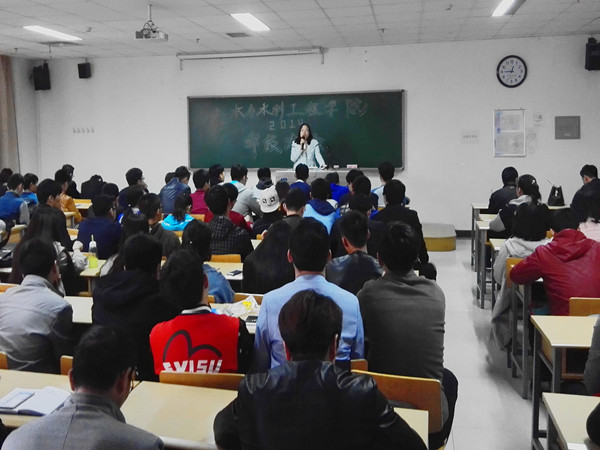 会议在同学们的掌声中开始。党委副书记柳松洁表示,目前14级同学正处在关键时期,考研和就业是同学们目前必须认真考虑的问题,同学们心中应该有一把属于自己的秤,明白究竟应该朝哪一个方向去努力。并指出,坚持自己的理想是唯一的选择,大家应该有一个目标,并且将之付诸于实践,应该为学弟学妹们树立一个好的榜样!书记的讲话赢得了在场所有学生老师的阵阵掌声。与此同时,柳书记还就宿舍问题向同学们提出了要求,他希望同学们的宿舍是干净的,是整洁的,是真正的家。
