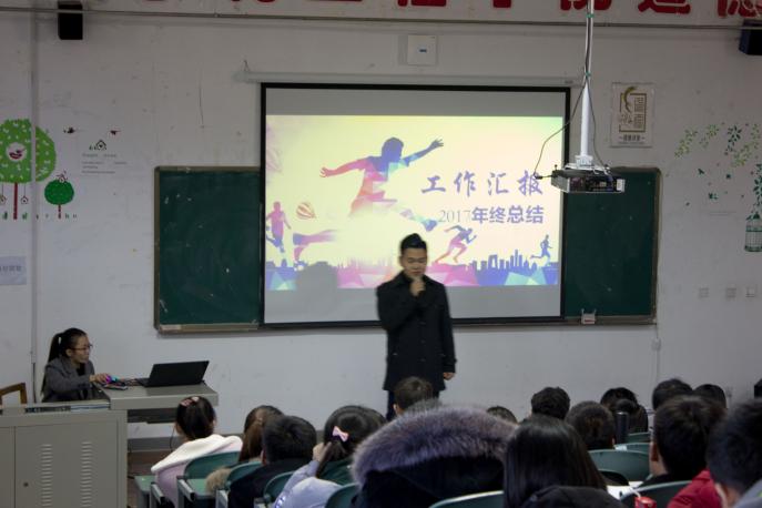 团委学生会在知行楼三阶隆重举行了2017学年秋季学期团委学生会述职测评报告会。学院党委副书记柳松洁老师、学院团委书记蒋宇欢老师、学生工作办公室陶雪梅老师、何进宇老师、马小凤老师出席了本次会议,团委学生会全体成员参加了本次会议。此次会议由7名主席团成员以及来自14个部门的代表进行了述职报告,对于本学期的学生工作进行总结、反思,通过述职提升学生干部的综合素质。