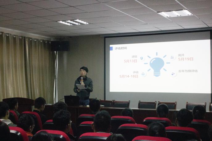 首先,蒋宇欢强调了审核性评估的重要性,要求全体同学都应该规范自我行为,积极行动,以迎评促建、促改为己任,对学校、学院有足够的自信感、责任感。熟练掌握《评估手册》、《迎评估学生行为规范》等规章制度,规范在校期间的点滴行为,从我做起,用心为校做力所能及之事。他要求,同学们要客观的看待目前学校发展现状,从大局出发,客观的与专家反应、交流校情和院情,用最规范的行为,迎接评估,争做评估的排头兵。