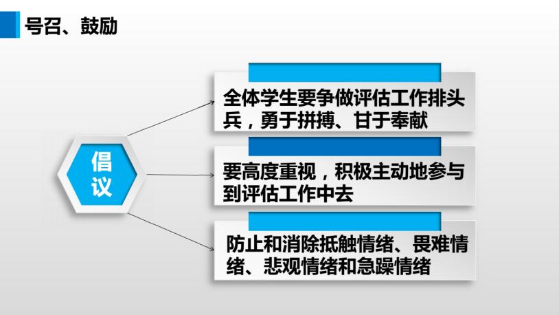 此次会议,同学们通过对上学期的总结明确了本学期的努力方向;年级教学评估动员会的召开,使2017级全体同学对于审核性评估有了进一步的了解,认识到了教学评估期间每个个体的责任,为即将到来的审核性评估做好了充分准备。