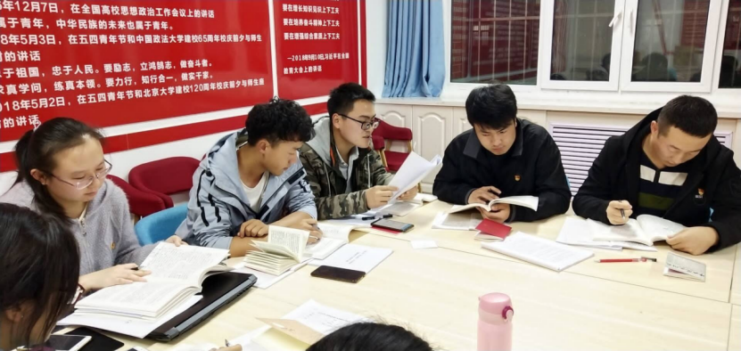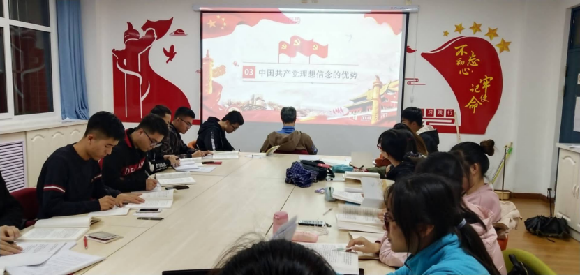 2019�10�23日星期三晚,土木与水利工程学院土木本科党支部�15学生公寓1楼党员活动室举行“不忘初心、牢记使命”主题教育第四次集体学习,土木本科党支部全员参与学习�