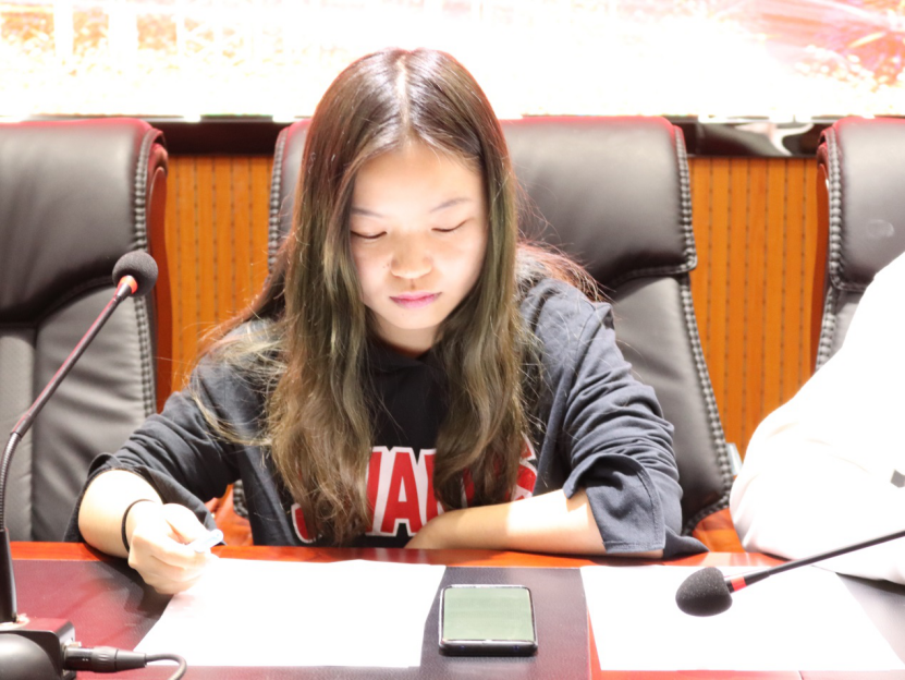 蒋宇欢作总结发言。他希望同学们能够在学生组织的工作中培养自己的能力,主动积极工作,降低功利心理。他还传达了《共青团中央、教育部、全国学联关于推动学校学生会(研究生会)深化改革的若干意见》的部分内容,强调了学生会的职能定位。