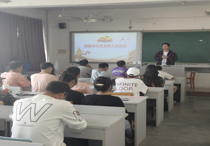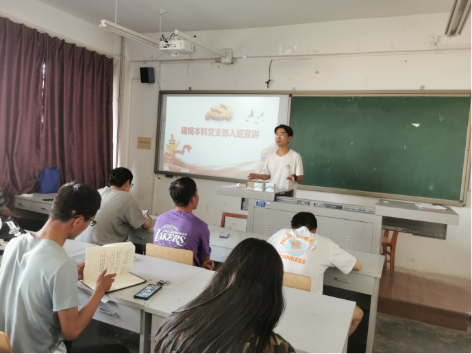 为进一步宣讲党的方针政策和理论知识,引�2021级新生积极向党组织靠拢,发挥基层党支部的战斗堡垒和榜样模范作用,9�30日下午,建规本科党支部副书记贾浩和宣传委员陈涛前往2021级建筑规划类1班和2班开展“党支部进新生班级”宣讲活动,2021级建筑规划类专业所有同学参加了本次宣讲活动�