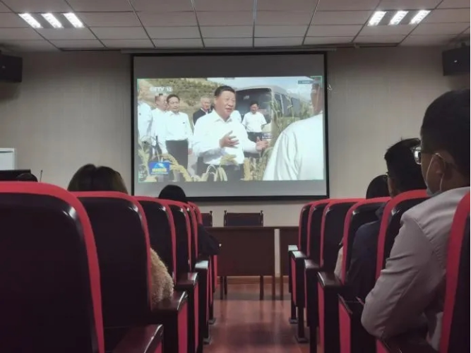 在观看了习近平总书记在考察陕西榆林期间的视频后,支部党员纷纷发表了自己的观后学习感悟。马玉同志认为我们要深入贯彻绿水青山就是金山银山的理念,把生态治理和发展特色产业有机结合起来,走出一条生态和经济协调发展、人与自然和谐共生之路;单佳洁同志认为我们要始终把人民利益放在最高位置,持之以恒保障和改善民生,推动巩固拓展脱贫攻坚成果同乡村振兴有效衔接,促进共同富裕取得扎实进展,不断增强人民的获得感幸福感安全感;马琳同志则认为我们作为党员应该认真学习领会好、坚决贯彻落实好习近平总书记来陕考察重要讲话和重要指示精神,增强“四个意识”、坚定“四个自信”、做到“两个维护”,锐意进取、扎实学习,用自己的专业能力为建设更好的社会贡献力量。
