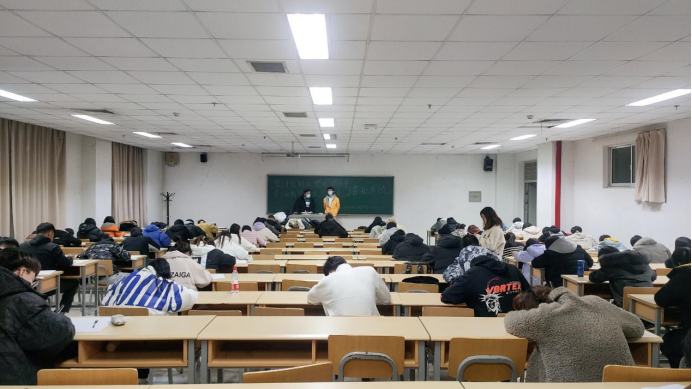 本次考试由土木本科党支部书记何涛老师、建规本科党支部书记蒋宇欢老师以及党建办公室小组成员监考。考试中,监考员严谨负责,认真监考;考生们也奋笔疾书,运用在培训中学到的知识,认真思索,仔细答题,展现了良好的素质和井然的秩序。
