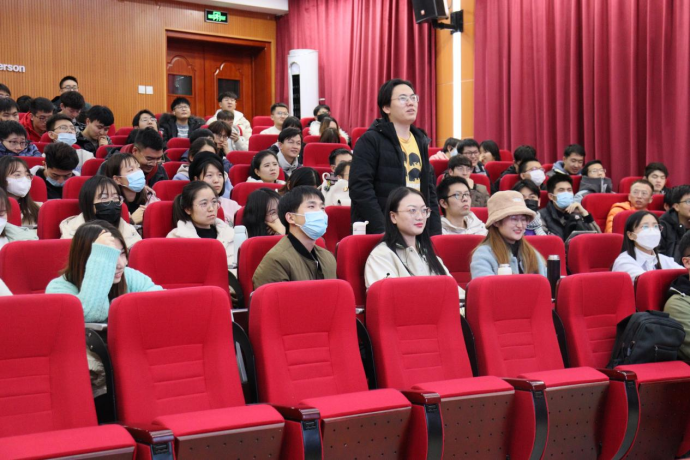 通过与现场同学的互动,她进一步向同学们阐释了在专业知识技能、自我管理技能、通用技能中,专业知识技能最易获得,而我们需要在学习之余不断地自我积淀和参与社会实践,以提高自我管理技能和通用技能。