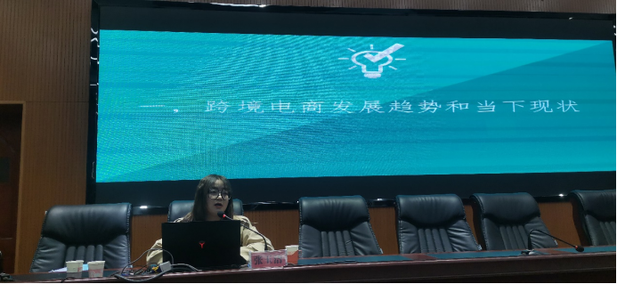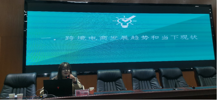 站”讲座,主讲人为跨境电商启蒙计划负责人张玉洁,活动由2019级本科生辅导员梁冀宁主持。