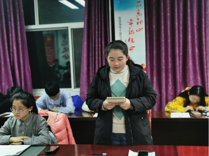 本次需要转正的7位预备党员分别为:贾浩、施宇、魏东旭、边磊、杨聪、马琳、田娟。七名预备党员依次汇报了过去一年中所从事的各项工作和志愿活动,并就自己服务人民的思想提升过程做了简要概括,向大会提出转正申请。