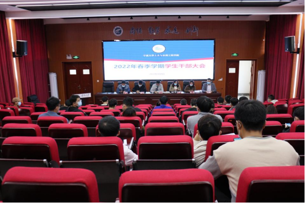土木水利工程学院召开2022年春季学期学院学生干部大会,会议于知行楼三楼阶梯教室及线上同时开展。学院党委副书记苏宇静、20级本科生辅导员何涛、研究生辅导员徐浩、19级本科生辅导员梁冀宁、21级本科生辅导员吴璞伟、各班班长、团支书、学习委员、学生党支部委员、团委、学生会、易班工作站各级负责学生参与本次会议,学生工作办公室主任王娜主持本次会议。