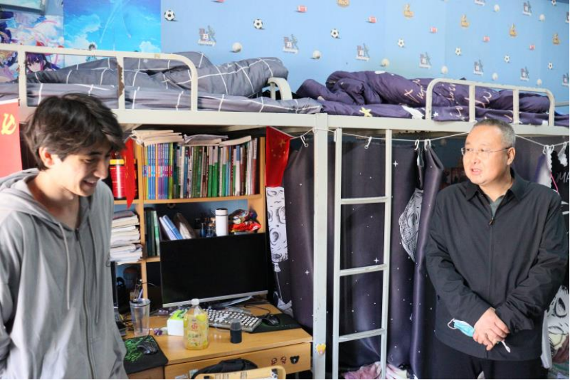 为了解学生五一小长假学习、生活情况,5月1日,学院领导陈晓敏,辅导员何涛、梁冀宁深入学生宿舍,实地看望在校学生,开展五一假期慰问。