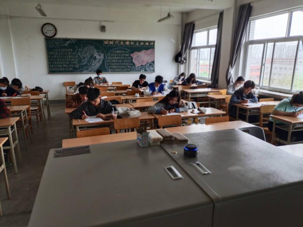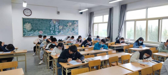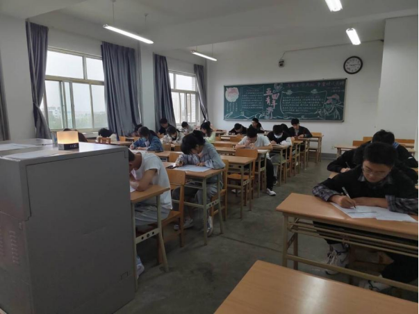 考试开始之前,监考小老师们在黑板上写下考试流程及时间安排,同学们此时也已经准备好工具,状态良好、精神饱满,以极高的热情应对此次英语四六级模拟考试。模拟考试正式开始。考生们都埋头奋笔疾书,认真答题,严格按照考试流程来答题。在考试中,只能听到考生认真答题的声音,除此之外,再无半点杂音。同学们时而急促,时而轻缓,按照自己的考试习惯答题,整个过程张弛有度。考场氛围紧张而又带着些舒缓,呈现出一幅严肃沉重的景象。监考小老师们也在各司其职,在每个关键时间点提醒考生流程安排,以便同学们牢记时间安排,在真正的英语四六级模拟考试中做到严格按照考试流程答题,不会因为时间问题而留有遗憾。