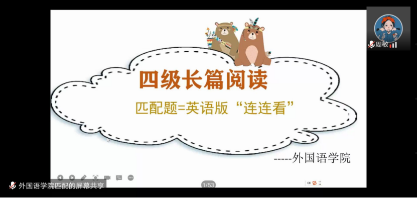 全体本科生进行了第二次的四六级线上答疑的活动。希望同学们可以顺利通过英语四六级考试。本次参与辅导的四级同学有一百六十名,参加六级辅导的同学有一百零四名。
